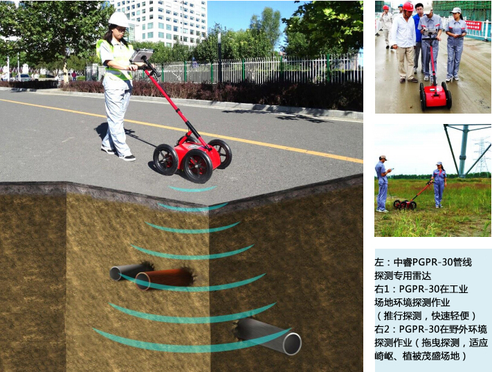 PGPR-30管線探測專用雷達是為精確探測和定位各類金屬、非金屬管線而設計的新型專用設備,由一體化主機、高性能屏蔽式天線、三防顯控終端和四輪(可切換兩輪)手推車等部件組成,便于攜帶作業(yè)、操作簡單、探測結(jié)果易于識別判讀,是目前性能先進、使用方便的國產(chǎn)管線探測雷達。可廣泛應用于管線普查和詳查、工程管線定位、環(huán)保監(jiān)督等各個領(lǐng)域。