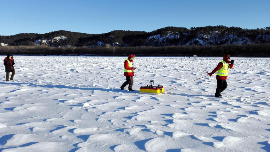 2015年12月,大連中??萍及l展有限公司與中國水利水電科學研究院合作,采用中??萍紕撔卵邪l的IGPR-10型冰厚水深綜合探測雷達,在我國北方的河流黑龍江漠河北極村段,成功進行了冰封河流冰厚水深連續綜合探測,開創性地獲取了高精度河流連續冰厚水深雷達圖像。通過沿河流中宏線、河流中宏到河岸橫斷線進行的10千米測線的探測作業,IGPR-10型冰厚水深綜合探測雷達性能表現優異,冰厚水深探測結果準確,作業快捷,并能夠同步精確坐標定位,可在-30度環境下穩定可靠工作。這一創新高新技術成果為河流冰情基本觀測、河流凌汛預防預警和凌汛爆破排險提供了先進的設備和手段。