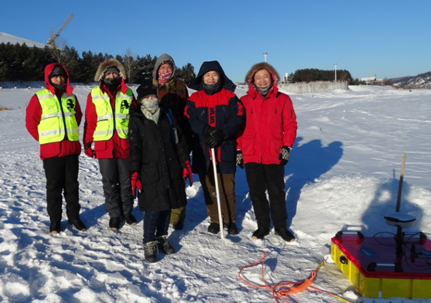 圖6 中國水科院專家和大連中??萍及l展有限公司工程師在黑龍江冰水探測現場